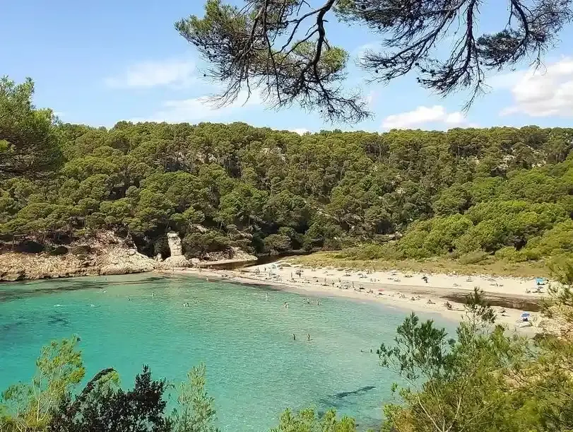 Cala Trebaluger es una playa aislada y se considera una de las perlas del sur de la isla de Menorca. De arena blanca y aguas turquesas cristalinas , esta playa representa lo que todos tenemos en mente cuando pensamos en playas de Menorca, con la diferencia respecto a otras en que cuenta con un río que desemboca en el mar en la propia playa.